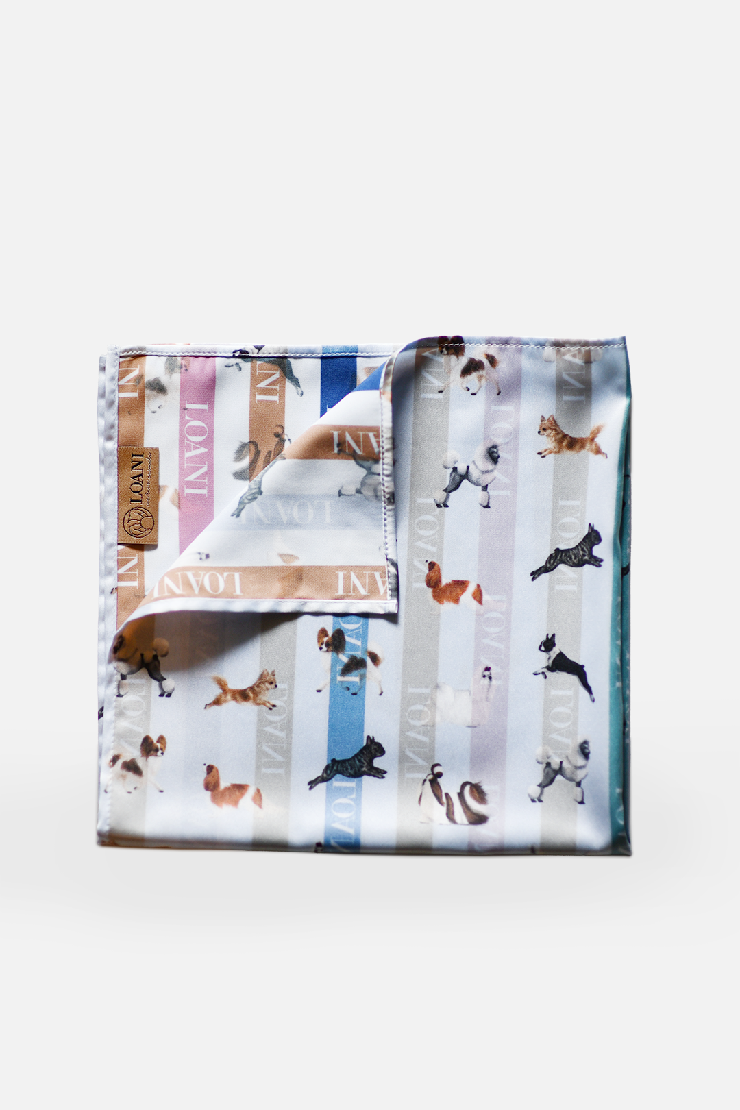 Apaszka satynowa LOANI w odcieniu błękitu w paski to elegancki i ponadczasowy dodatek, który doda charakteru każdej stylizacji. Jej wyjątkowość tkwi w autorskim wzorze – całość zdobią ręcznie rysowane pieski, przeniesione na tkaninę w duchu sztuki użytkowej. Dzięki temu każda apaszka staje się nie tylko modnym akcesorium, ale także małym dziełem sztuki.