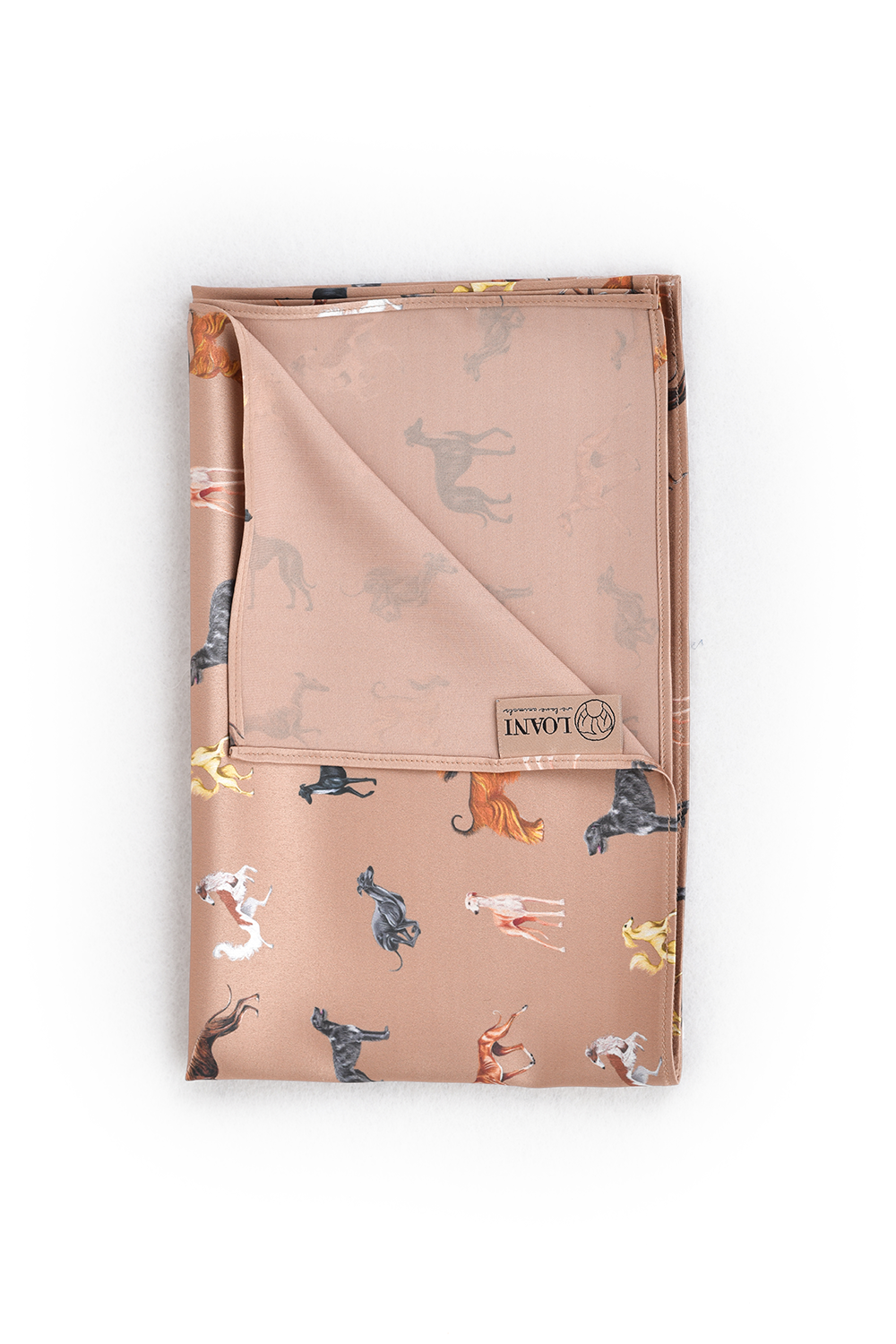 Apaszka satynowa LOANI w odcieniu karmelu to elegancki i ponadczasowy dodatek, który doda charakteru każdej stylizacji. Jej wyjątkowość tkwi w autorskim wzorze – całość zdobią ręcznie rysowane charty, przeniesione na tkaninę w duchu sztuki użytkowej. Dzięki temu każda apaszka staje się nie tylko modnym akcesorium, ale także małym dziełem sztuki.