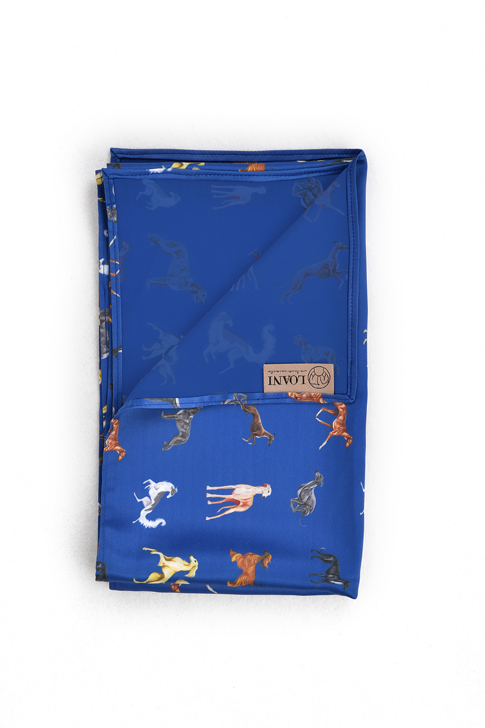 Stylowa apaszka w kolorze granatowym LOANI z wzorem chartów – idealna jako fular lub klasyczny dodatek. Pasuje do stylu casual i business.
