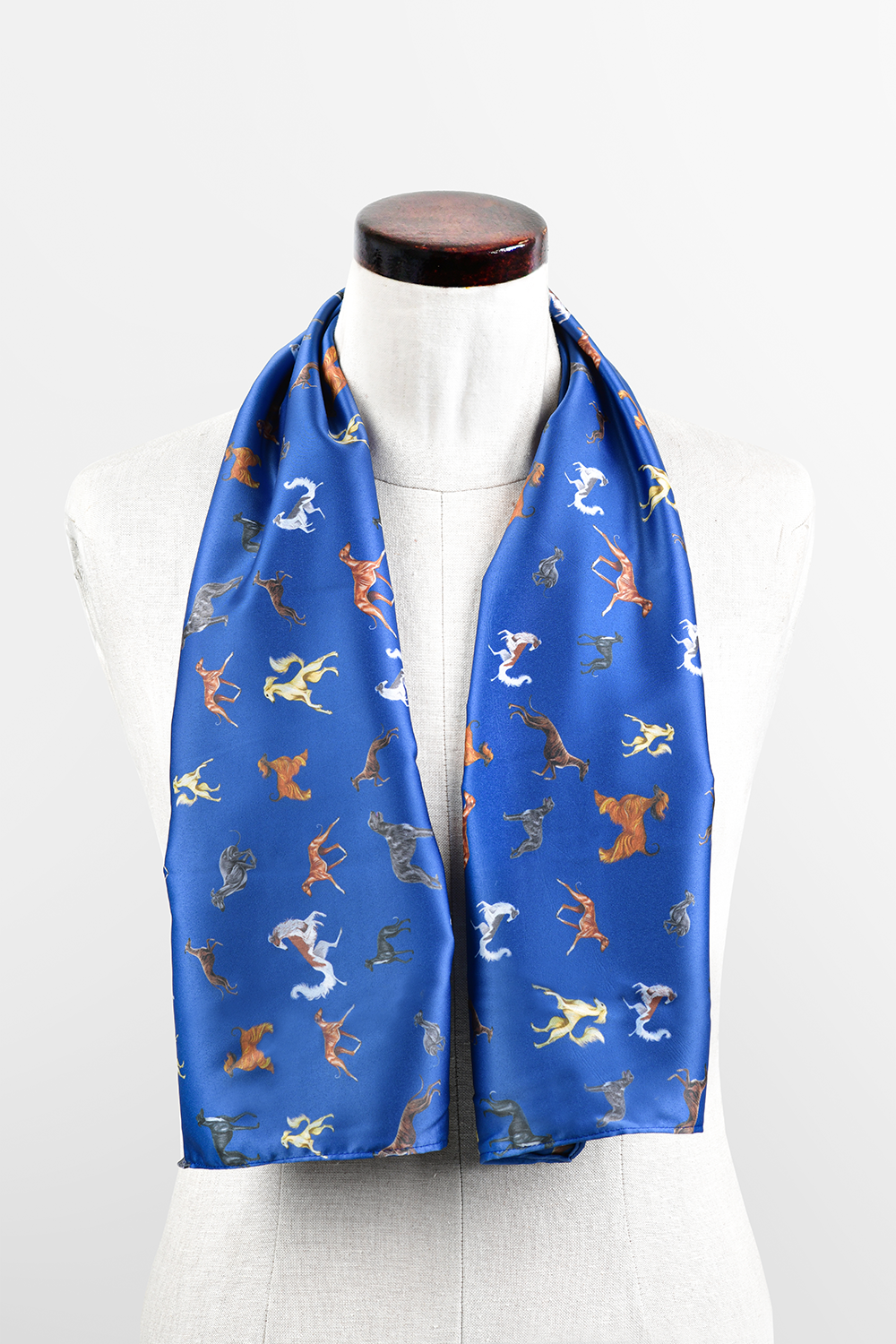 Elegancka podłużna apaszka we wzór chartów to idealne połączenie stylu i jakości. Znajdzie zastosowanie nie tylko w damskiej, ale i w męskiej garderobie w roli fularu. Ten stykowy dodatek sprawdzi się jako uzupełnienie stylizacji dla stylu business oraz business casual jaki sam casual. Doda Ci szyku przy każdej okazji. Nasza apaszka w kolorze granatu podkreśli Twoją osobowość. Charakteryzują się niezwykłą miękkością i delikatnością oraz zapewniają komfort noszenia przez cały dzień.