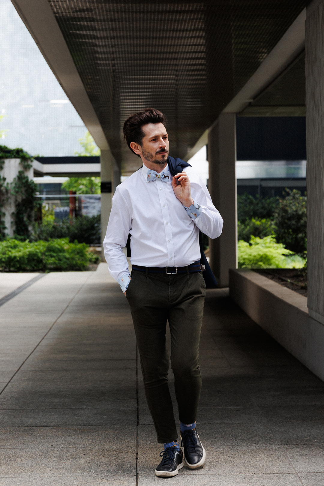Muszka męska w charty od LOANI to idealna propozycja dla osób ceniących klasyczną elegancję w niebanalnym wydaniu. Błękitna muszka zachwyca lekkością, miękkością i pięknym wzorem przedstawiającym charty – ręcznie rysowane, a następnie przeniesione na tkaninę.