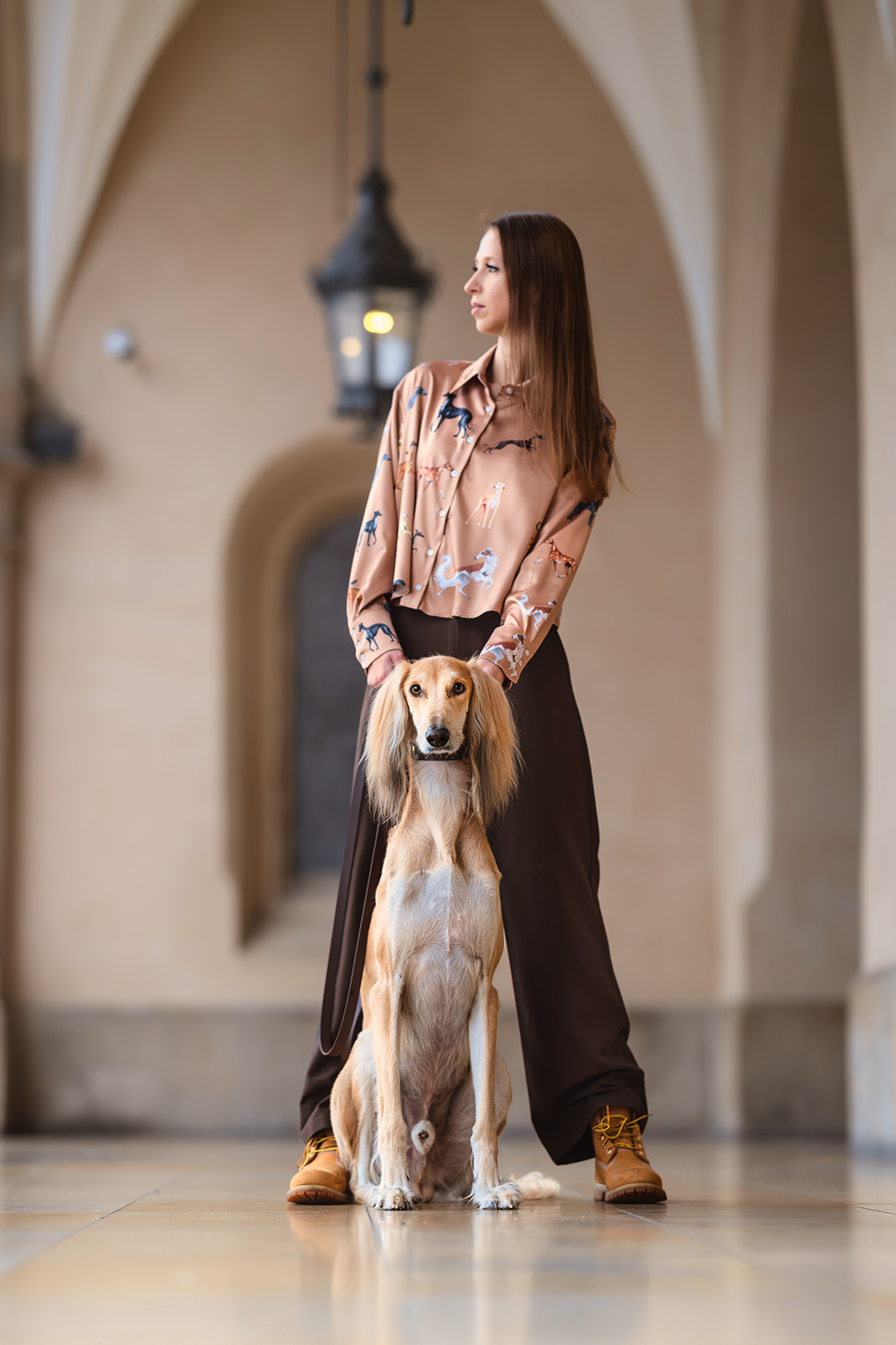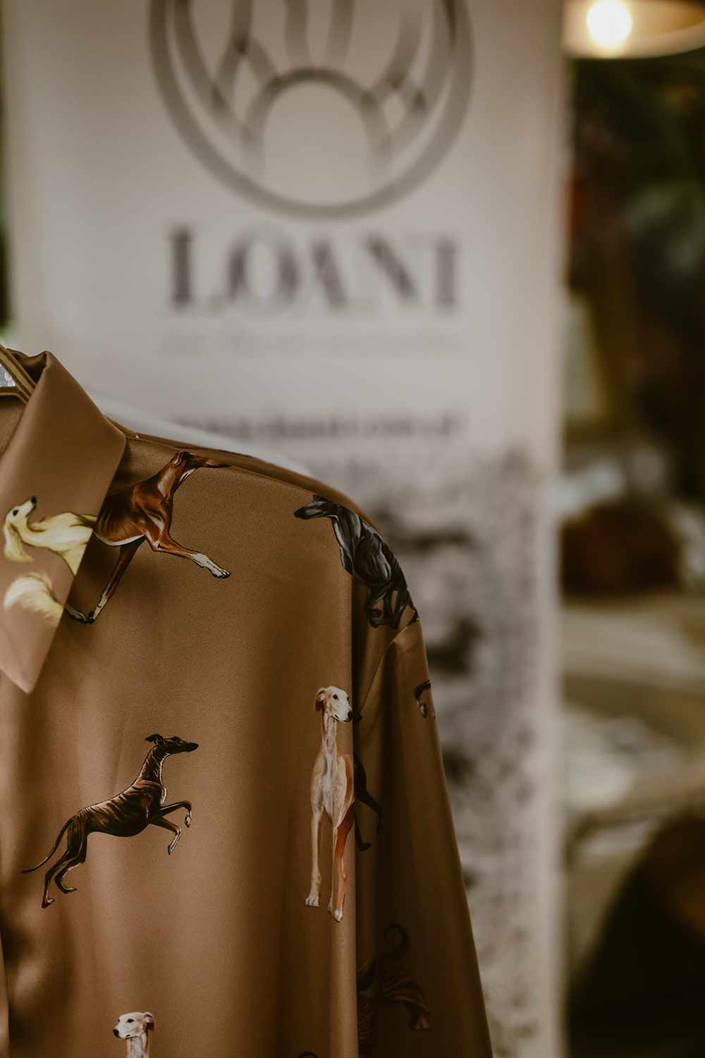 Koszula została ozdobiona niepowtarzalnym wzorem przedstawiającym sylwetki różnych ras chartów – pełnych gracji i siły. Każda sylwetka została ręcznie narysowana, co nadaje wzorowi unikalnego, artystycznego charakteru.