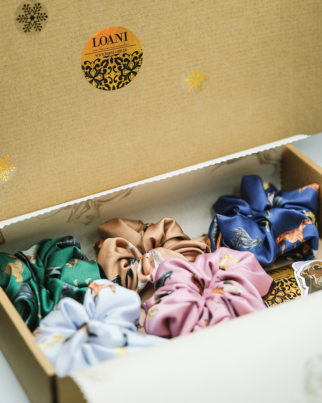 Kolor, detal i swoboda wyboru – Scrunchie Box Prezentowy LOANI to zestaw stworzony z myślą o kobietach, które kochają stylowe dodatki i polskie akcesoria szyte lokalnie.