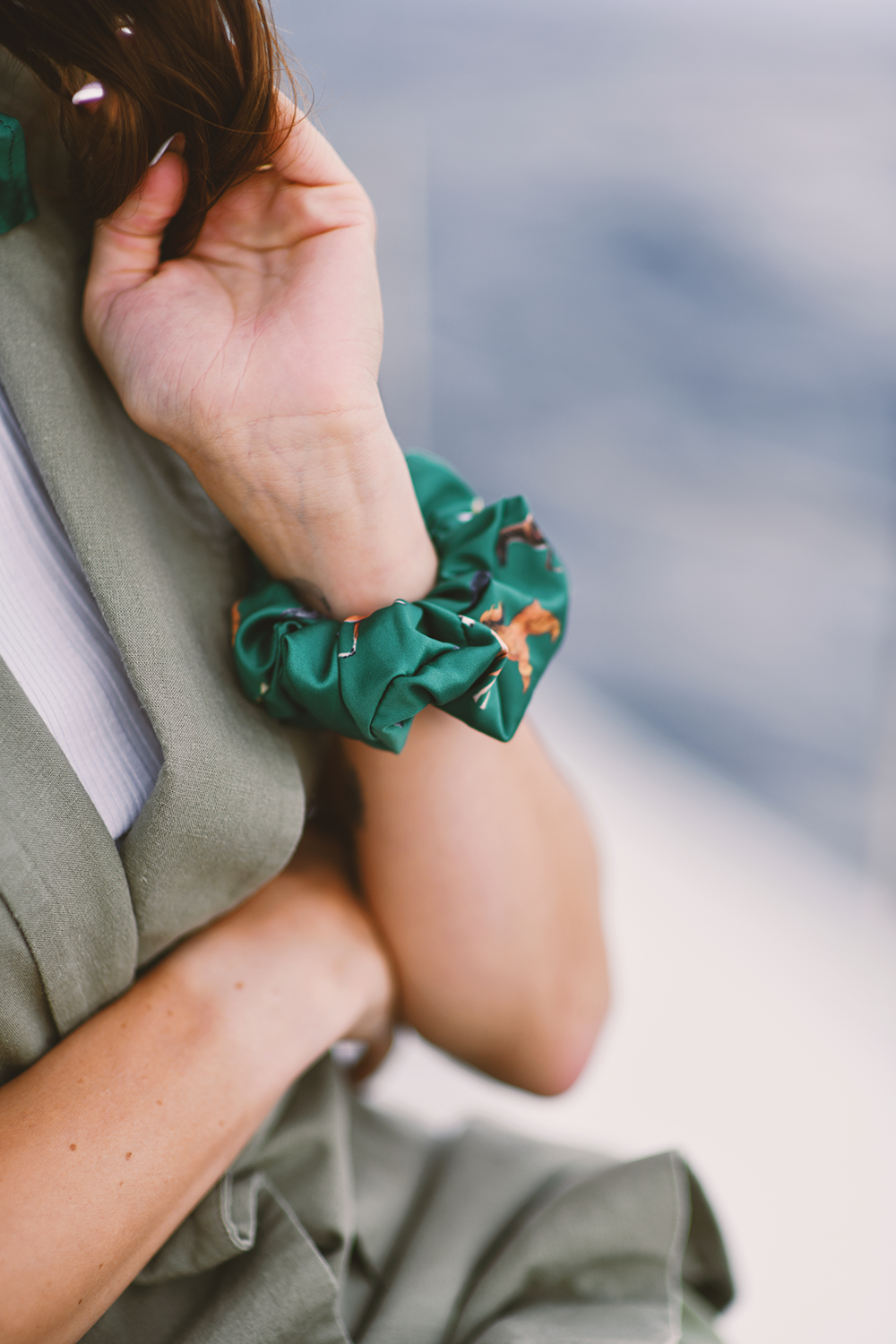 Zielona gumka do włosów scrunchie | Charty